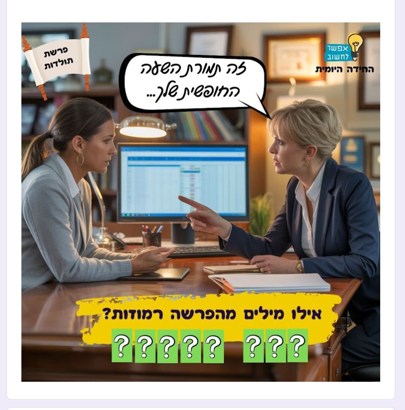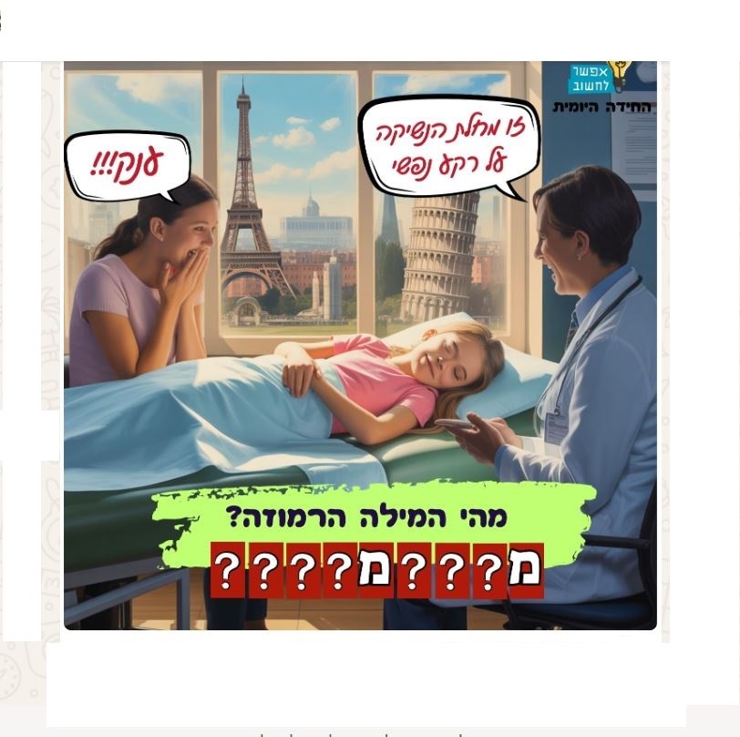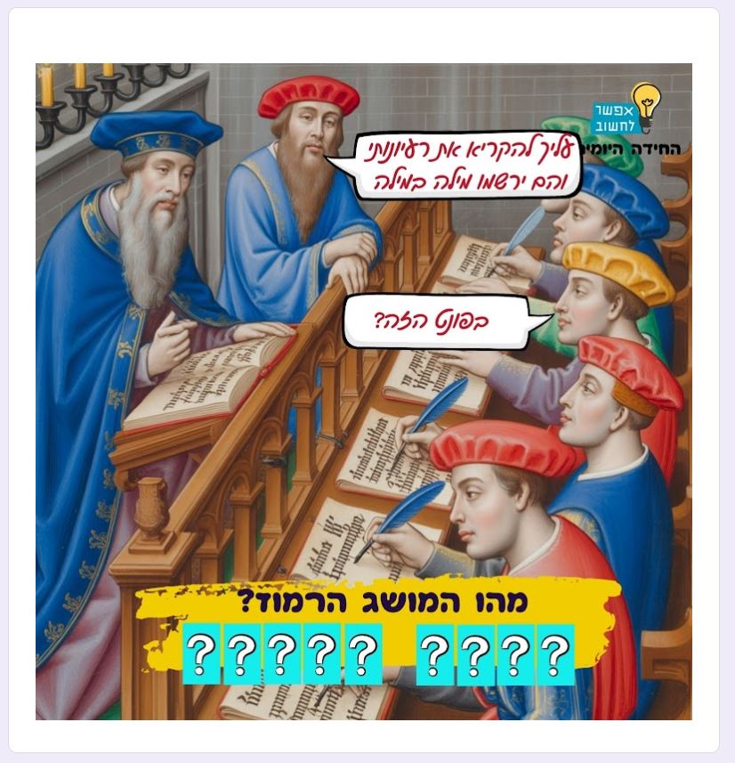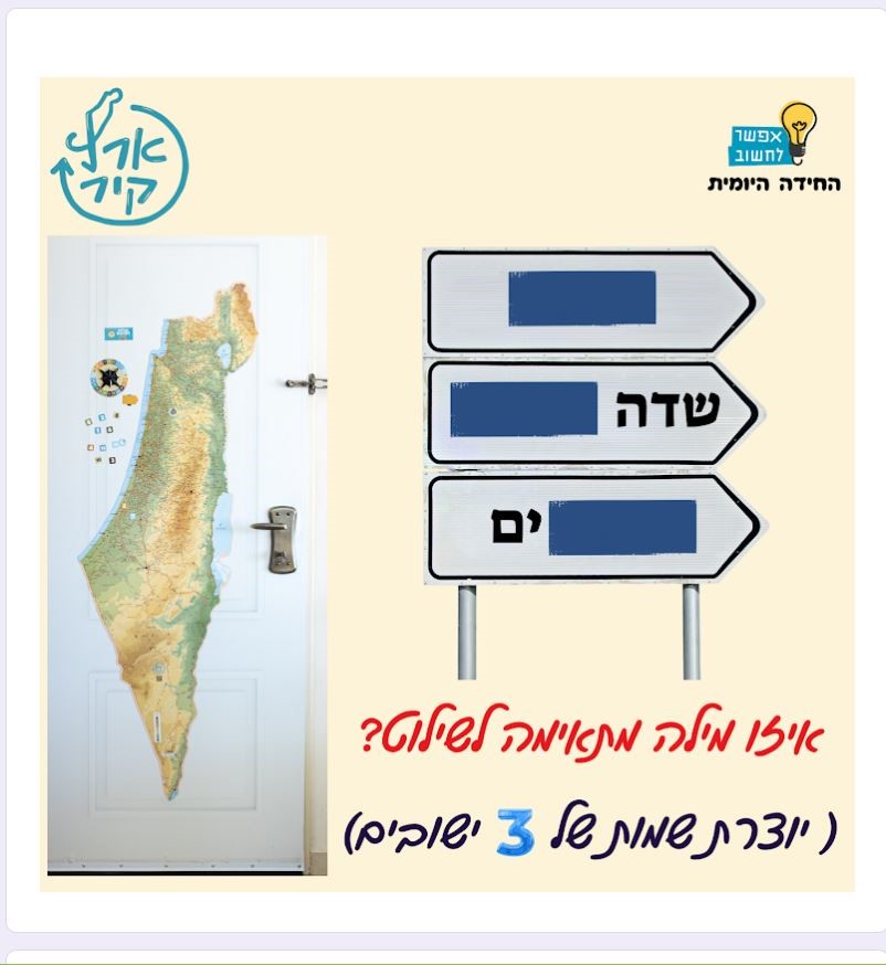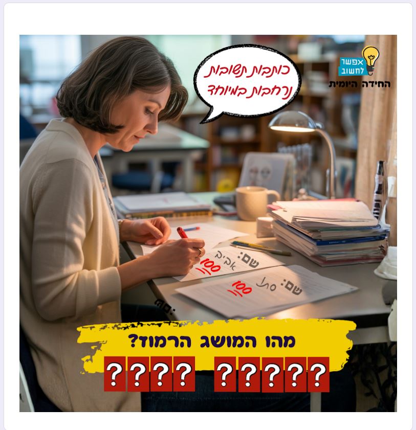 ותודה ל"אפשר לחשוב – החידה היומית" (שמשם נלקחו החידות).